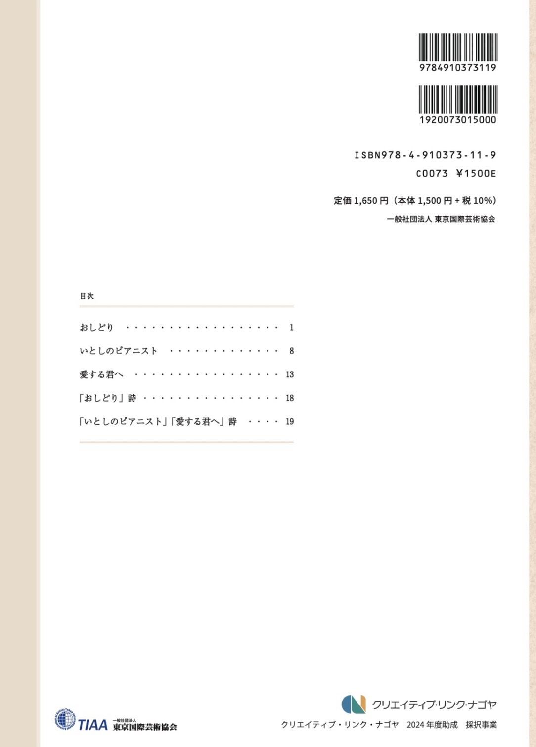 収録曲:おしどり いとしのピアニスト 愛する君へ 作曲:蒔田裕也 作詩:山岸千代栄 岡田尚之 岡田尚之作詩の「愛する君へ」を含む3曲を収録した楽譜です。
